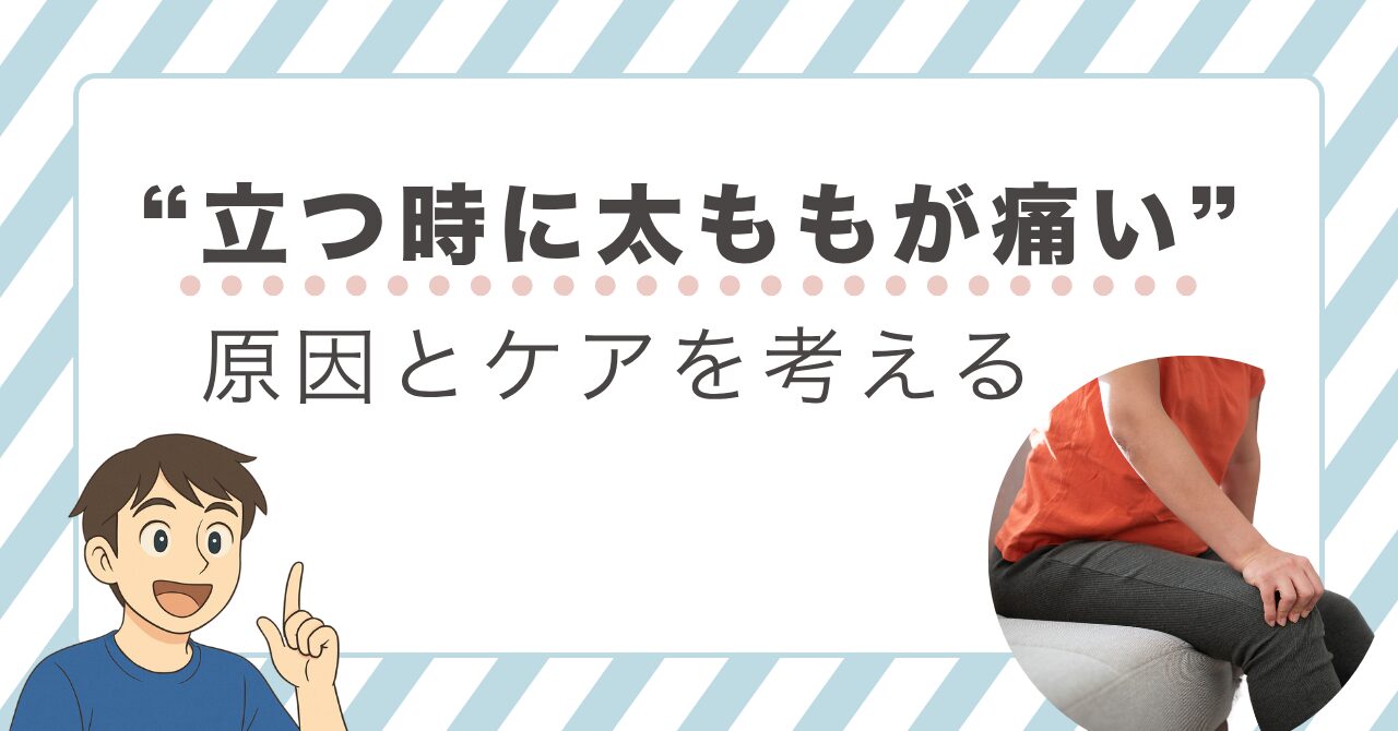 太もも周囲の筋肉が硬いと、立ち上がりや動作時の痛みの原因になることがあります。柔軟性の大切さと、自宅でできるケア方法をわかりやすく紹介しています。
