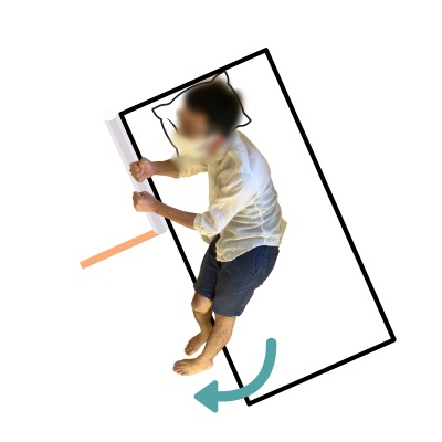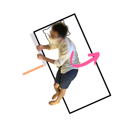 • 左足底でベッドを蹴りながら右側へ寝返る