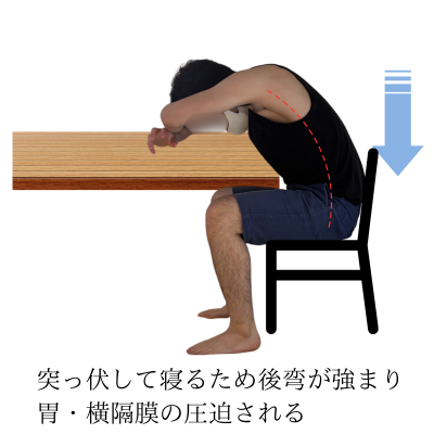 そのため、猫背によって胃・横隔膜が圧迫され、