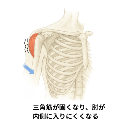 肩甲骨の位置が乱れる原因は、三角筋が硬くなっていることです。
