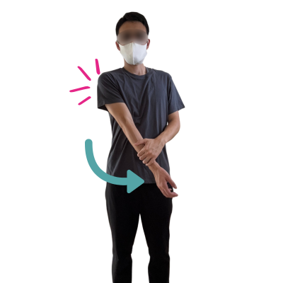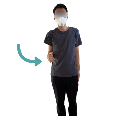 早速ですが肘を曲げて、脇腹につけてみてください。
