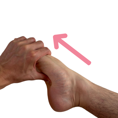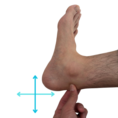 まず優しい力でアキレス腱を触って、上下左右に動かしていきましょう。