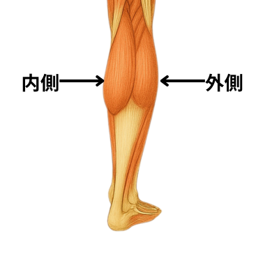 ですが、このふくらはぎの筋肉は筋肉が2つ分かれていて、内側と外側があります。