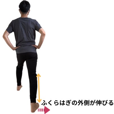 そこから前に重心をかけていくことによって、ふくらはぎの裏が伸びていくような感覚があると思います。